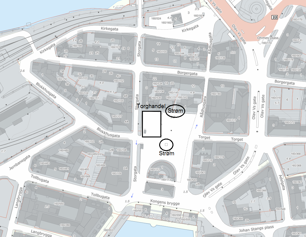Under kan du se et kart over Halden Torg som viser strømuttak og avsatt plass til torghandel. Strømuttak finnes ved Nordmannsstøtta og ved siden av Kokkekollektivet.