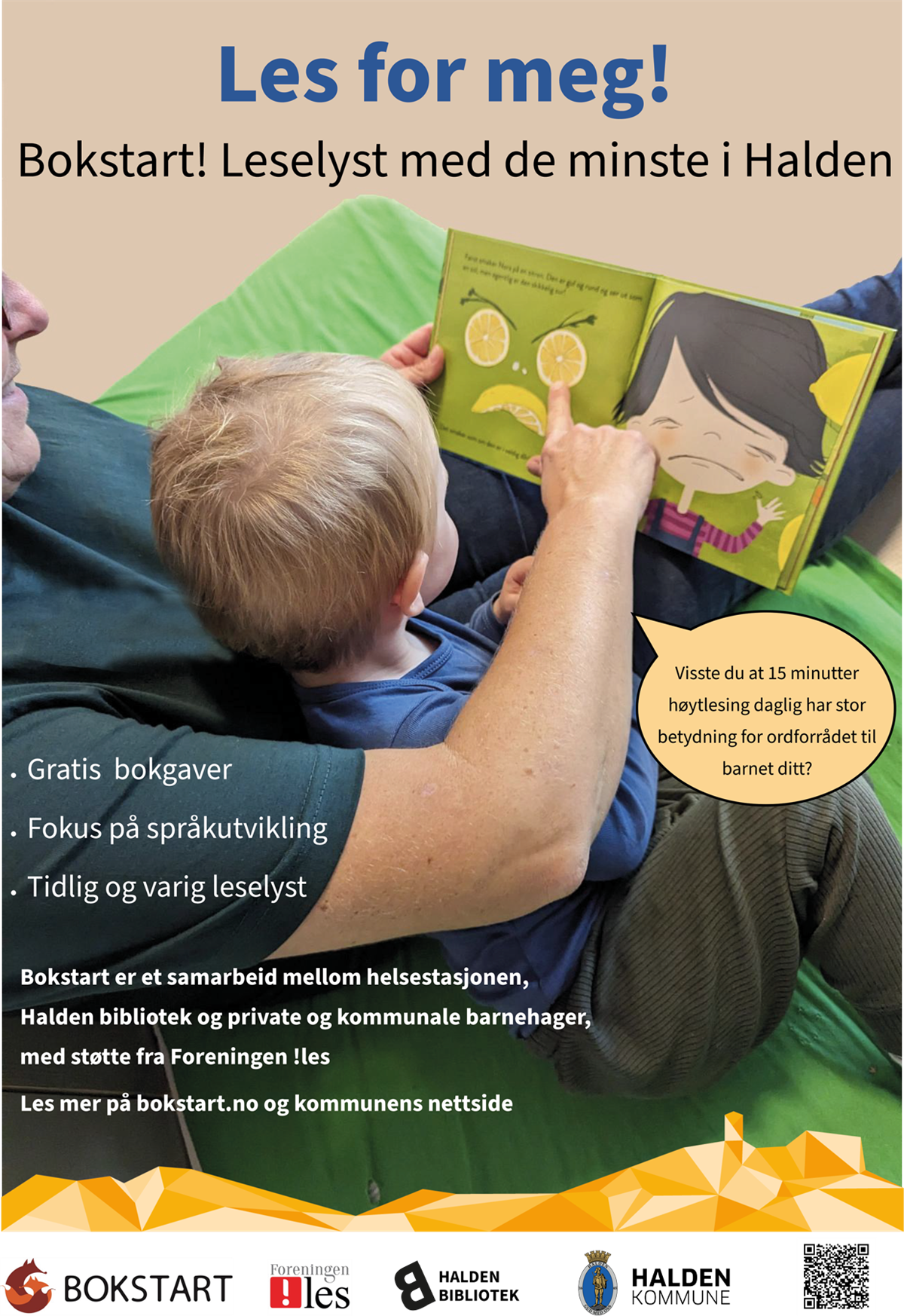 Bokstart er et samarbeid mellom helsestasjonen, Halden bibliotek, private og kommunale barnehager, med støtte fra Foreningen !les. Målet med prosjektet er å styrke foreldrenes rolle for barnas språk- og identitetsutvikling, og legge til rette for leselyst og barnas senere lese- og skriveferdigheter.
